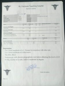 تم اخذ المريض الى الطبيب المختص بالاعصاب وطلب اجراء الفحوصات المرفقه بالصور.