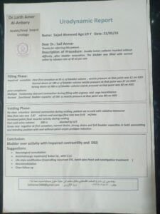 تم إجراء كل الفحصوصات والتحاليل اللازمة فقرر الطبيب اجراء عملية للمريض بعد ان تبين ان المرض اثر بشكل كبير على الكليتين والمثانه وكذلك على اعصاب الاطراف السفلى.