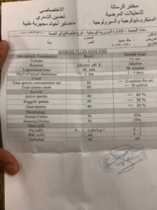الصور ادناه هي للفحوصات والتحاليل الخاصة بالمريض وزوجته.